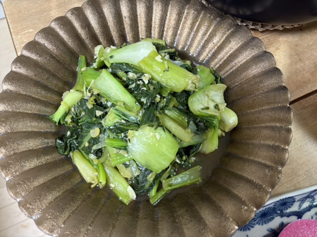 ⚫チンゲンサイとコマツナのオイスターソース炒め