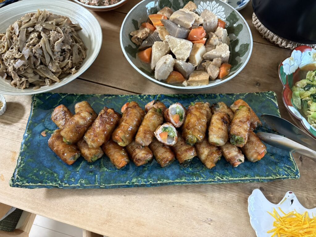 ⚫ニンジン ゴボウ オータムポエム ナバナ豚肉巻き