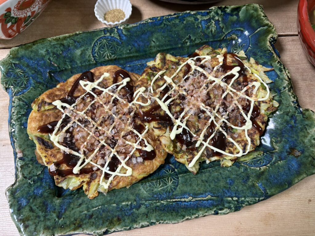 ⚫ヤマイモとキャベツと長ネギのお好み焼き風