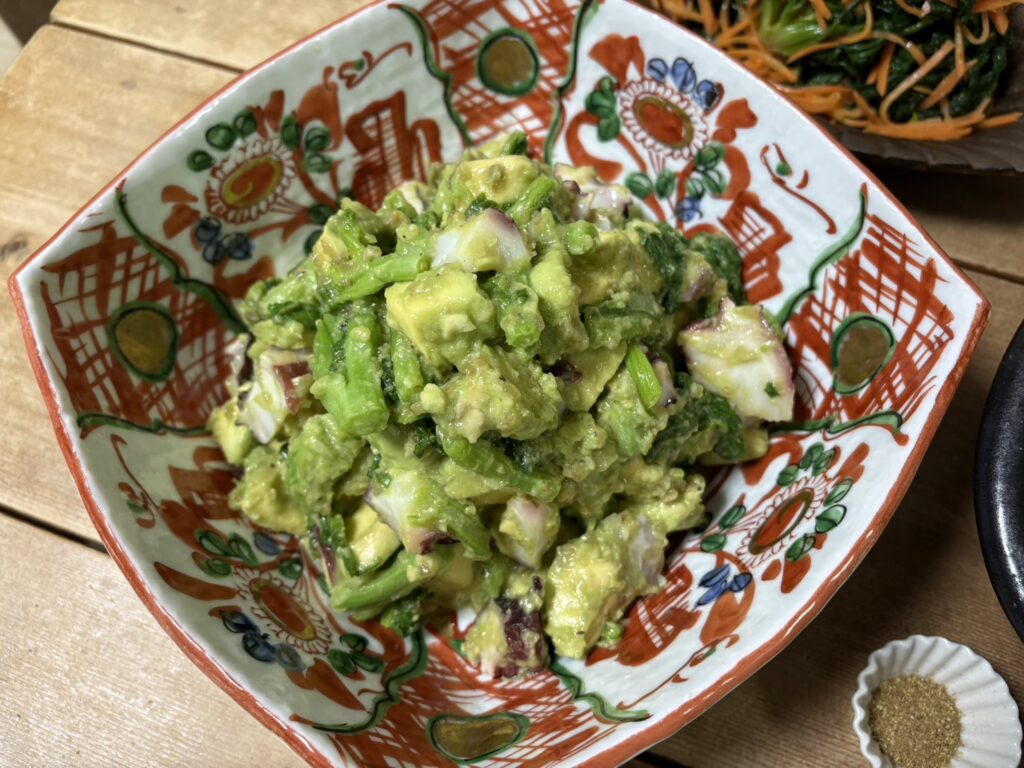 ●タコとアボカド、ナバナのマリネ