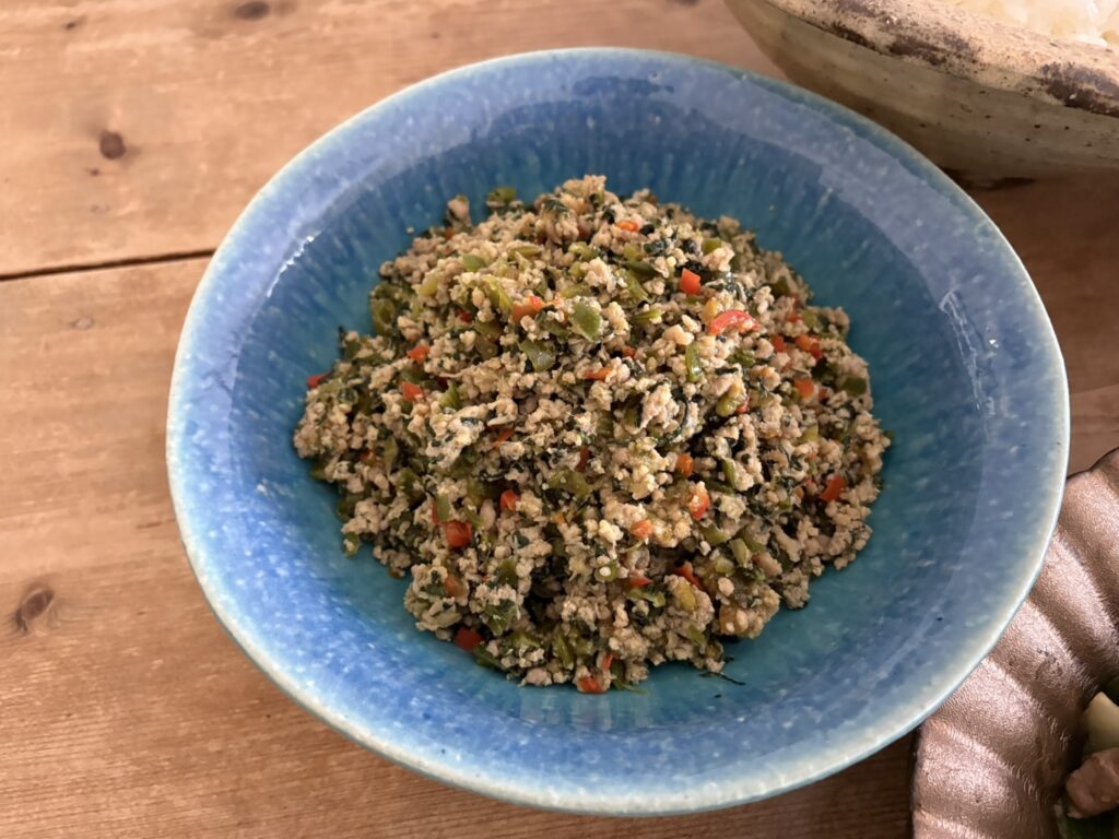 ●コマツナ ピーマンの鶏そぼろ