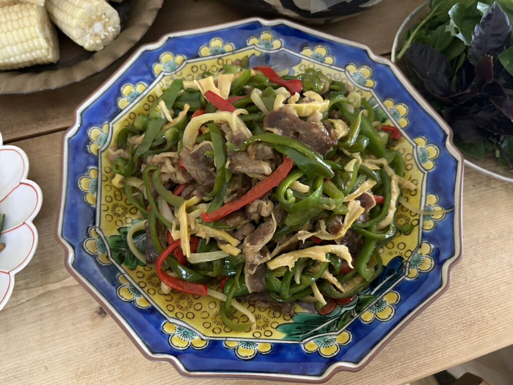 ●カラーピーマンとハチクと牛肉の青椒肉絲ふう