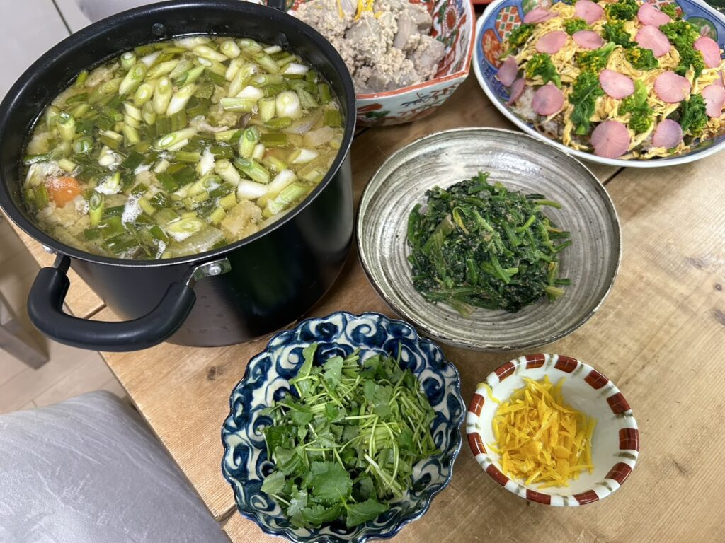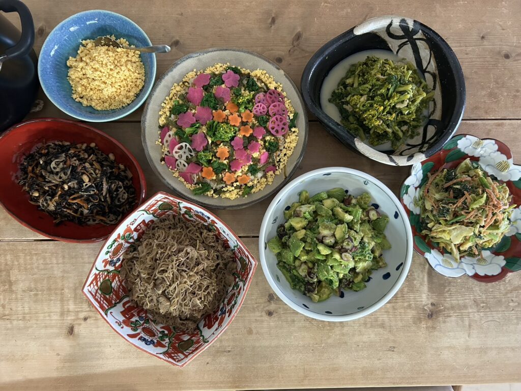 ⚫ちらし寿司(干し椎茸ニンジンレンコン、ナバナ、紫ダイコン)