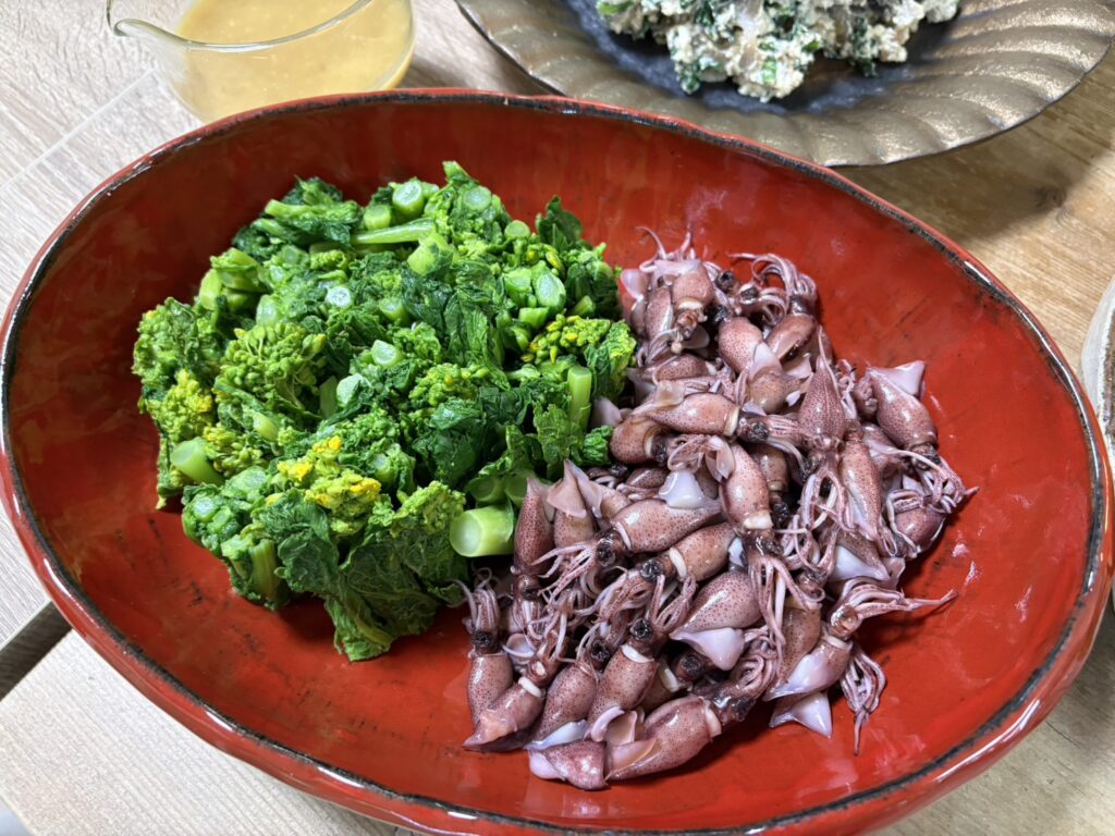 ⚫ナバナとホタルイカの辛子酢味噌あえ