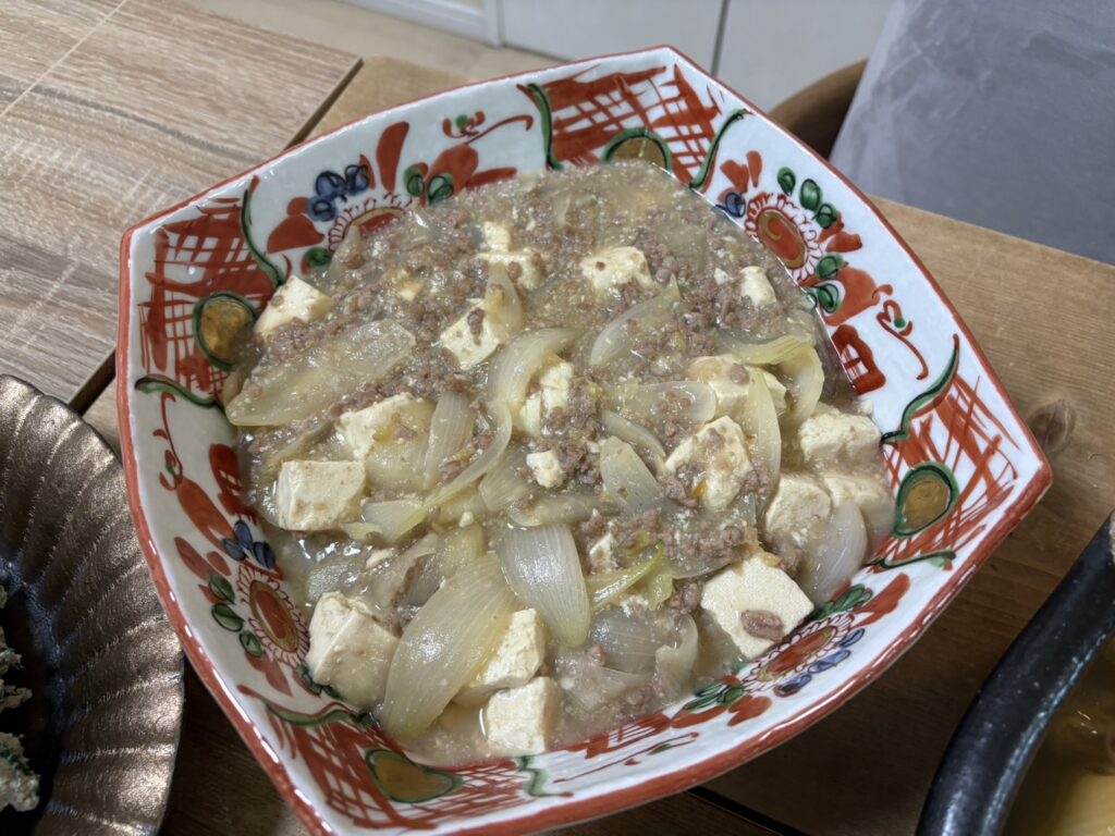 ⚫極早生タマネギの和風麻婆豆腐
